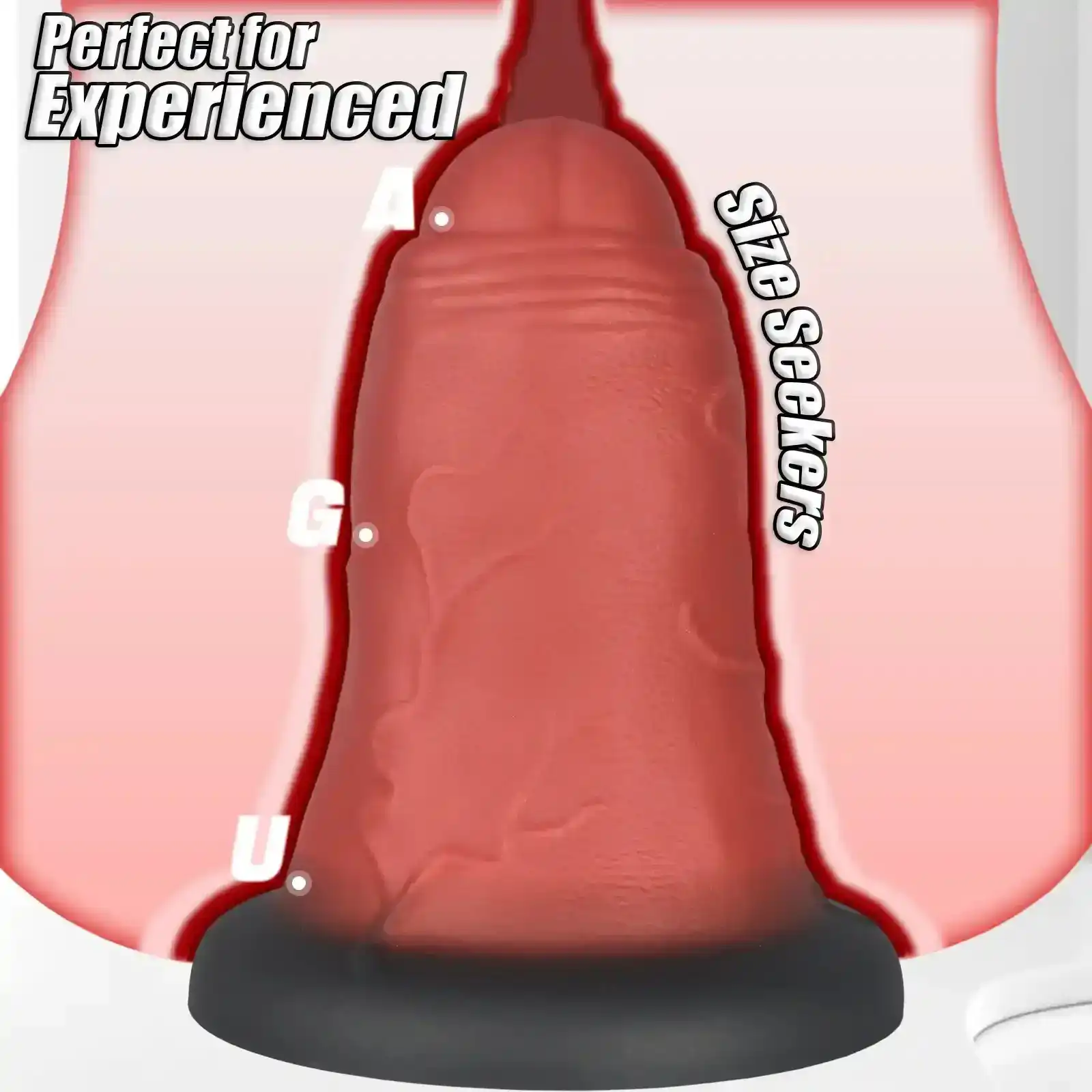 - Maße (Größe S): Gesamtlänge: 20 cm, Einführlänge: 18 cm, Durchmesser: 6 cm, Mittlerer Durchmesser: 9 cm, Saugnapf Durchmesser: 11,5 cm, Breite: 16 cm